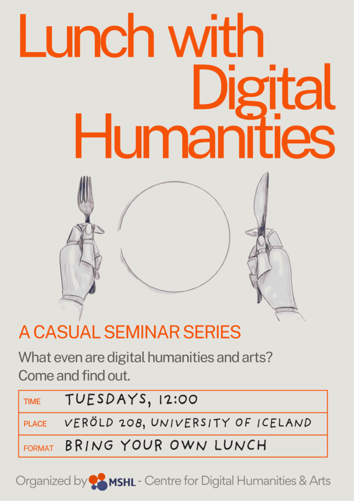 The Centre for Digital Humanities and Arts in Iceland is pleased to announce the second iteration of its lecture series, this time bearing the title Lunch with Digital Humanities.